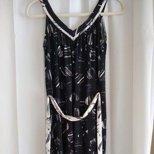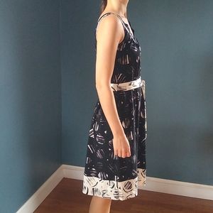 V-neck front and back with opposite color belt to make cinch waist with dress