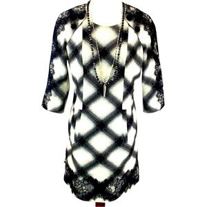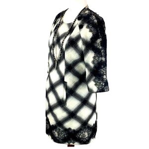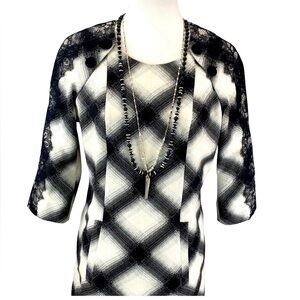 BCBG MaxAzria Plaid Jacquard Lace Trim Shift Dress