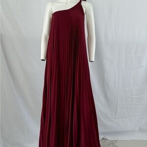 BCBG MaxAzria Pleated One Shoulder Maxi Dress Size XXS Burgundy Gown