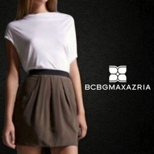 BCBG MaxAzria Pleated Silk Mini Skirt Dusty Olive 4 NEW