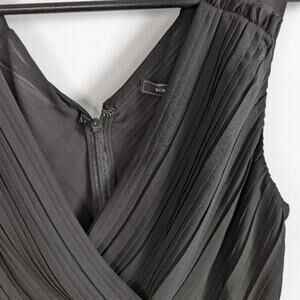 BCBG Max Azria Pleated V Neck Flowy Asymmetrical Black Boho Blouse XXS