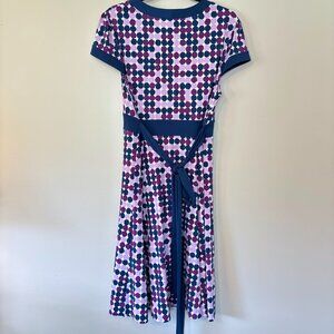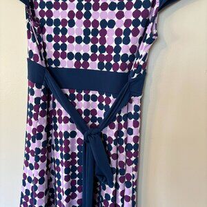 BCBG MaxAzria Polka Dot Midi, Tie Waist Dress, Purple, Navy, Pink - Size Large