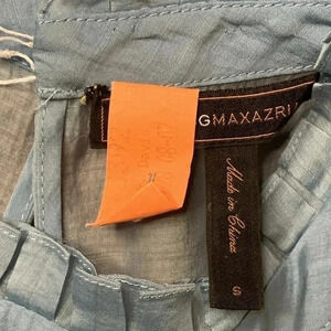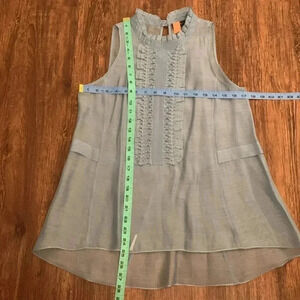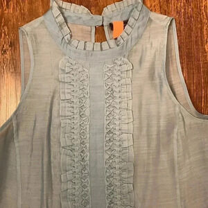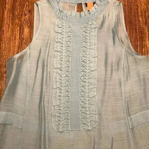 BCBG MaxAzria Ruffle Front Sheer Top Sleeveless Light Blue Size Small