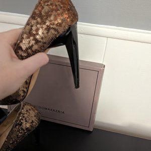 BCBG MaxAzria Satori Bronze Metallic Sequin Platform Pumps