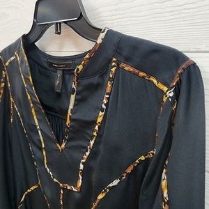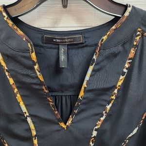 100% silk Blouse by BCBG MaxAzria. Animal print trim.