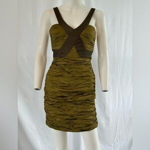 BCBG MaxAzria Simsom Olive Taffeta Ruched Mini Dress 4 Olive Green NWT