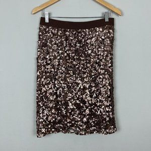 BCBG MaxAzria Skirt Medium Bronze Sequin Mesh Dorshea Pencil Glam Stretch New