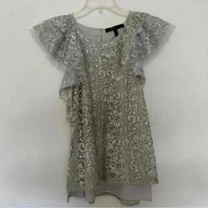 BCBG MaxAzria Steacy Silver Lace Ruffle Blouse SIZE XXS