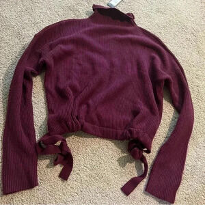 BCBG MaxAzria Tie Hem Mock Neck Womens Purple Sweater Size Medium NEW