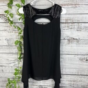 BCBG MaxAzria Tunic Top size XXS Black Sequins Cocktail Wedding Evening Disco