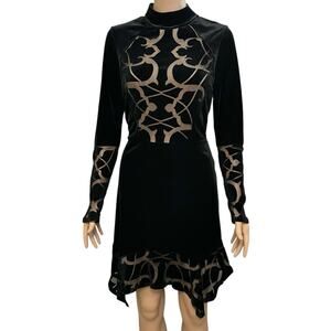BCBG MaxAzria Velvet Burnout Mini Dress Medium Pointy Witchy Whimsigoth Holiday