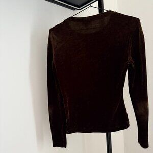 BCBG MaxAzria, Vintage Long-sleeve Brown Velvet Shirt, Size Small