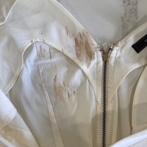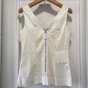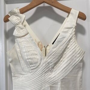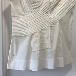 BCBG MaxAzria White Cotton V-Neck Bow Fitted Top Size XXS