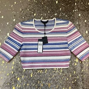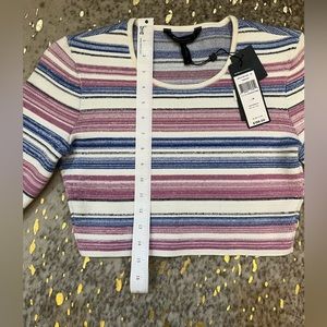 BCBG MaxAzria White Purple Blue Stripe Hadlee Knit Crop Top sweater M NWT