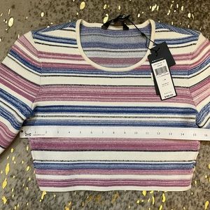 BCBG Max Azaria Hadlee crop sweater top in white purple and royal blue stripes NWT
