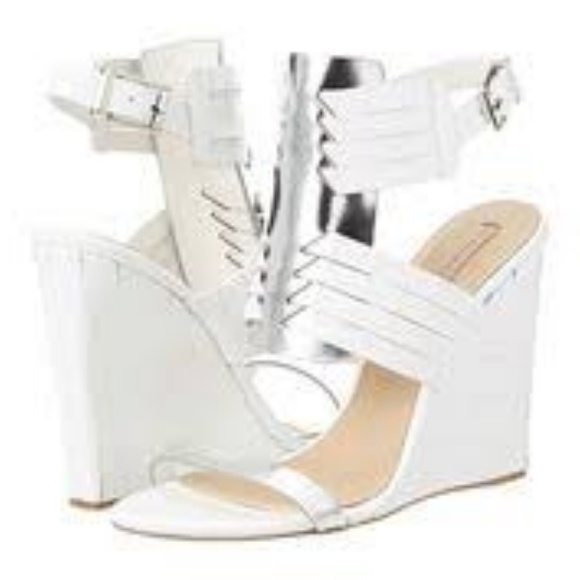 Reposhing this item I purchased from @elvira555. Beautiful sandals, but slightly too big for me since I normally wear a 6.5. They are still in the box as I never wore them. 4.5 inch wedge heel. White leather