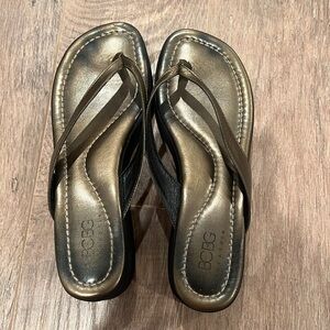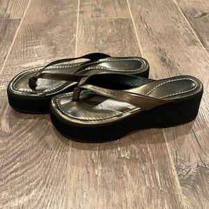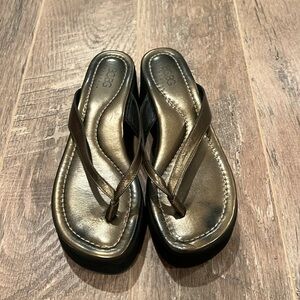 BCBG MaxAzria Woman’s Gold & Black Heeled Flip Flops