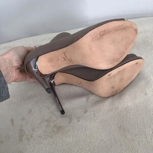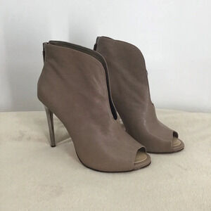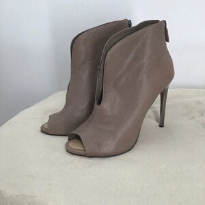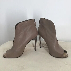 BCBG MaxAzria Women’s Durres Peep Toe Zip Leather Heeled Bootie Size 7.5