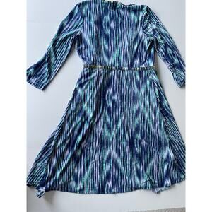 Great stretchy wrap dress, perfect for wearing to work and happy hour afterwards. Cute blue pattern. Easily adjustable - would fit for anyone wearing size 8-12.