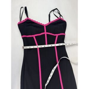 BCBG MaxAzria Y2K 2010s Club Dress Bodycon Black Contrast Pink Trim Colorblock