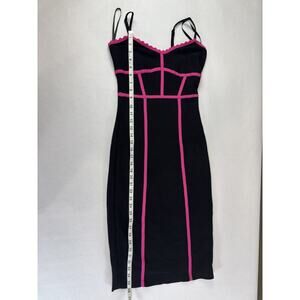 BCBG MaxAzria Y2K 2010s Club Dress Bodycon Black Contrast Pink Trim Colorblock