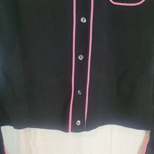 BCBG MaxAzria Y2K Button Up Preppy Cardigan Women Small Black Pink Dark Academia