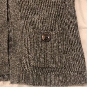 BCBG MaxAzria angora wool blend sweater in grey with top design button 2 pockets