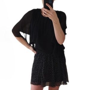 BCBG MaxAzria capelet black blouse sheer cape sleeves S