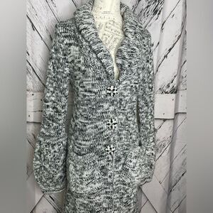 BCBG MaxAzria long cardigan marled w/bead & rhinestone buttons M