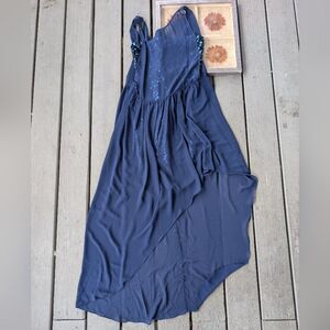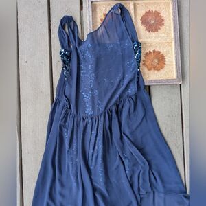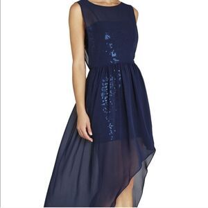 BCBG MaxAzria Blue Katrine Sequin Chiffon Dress 8 Asymmetrical Special Occasion