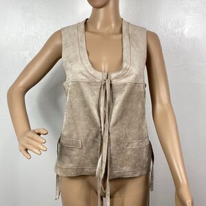 BCBG MaxAzria Brent Sleeveless Faux Suede Rodeo Vest with Tie Front size XXS