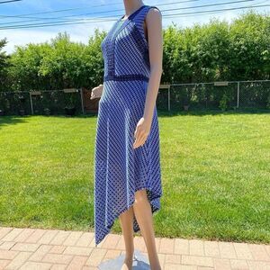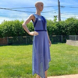 BCBG MaxAzria Tracie blue sleeveless asymmetrical hem midi dress size M