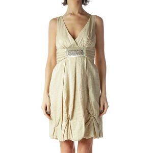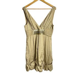 BCBG MaxAzria Y2K gold Sequin Patch Gathered Bubble Hem size 10