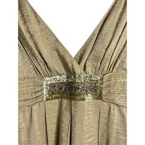 BCBG MaxAzria Sequin Dress 2 Patch Gathered Bubble Hem Rayon Shiny Sleeveless V-Neck Empire Waist OpenBack
