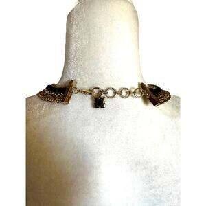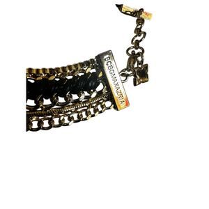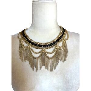 BCBG Maxazaria Gold Chain & Black Faux Leather Cascading Bib Necklace, NWOT