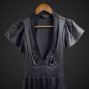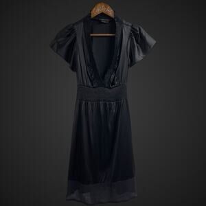 BCBG Maxazaria Little Black Silk Dress Size XXS Tie Back Mini