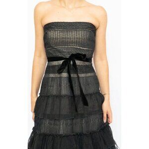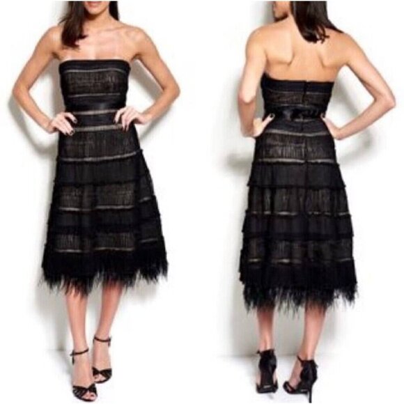 BCBG Maxazaria Sz 8 Black Strapless Lace Feather Boa Dress Ruffled NEW NWT $400