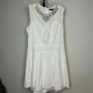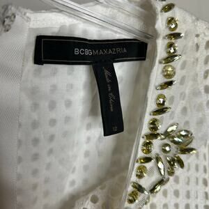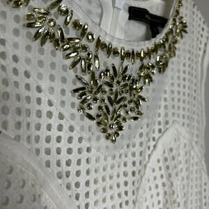 BCBG Maxazaria White Serina Dress-size 12-eyelet lined gold crystals,sleeveless