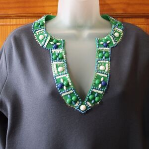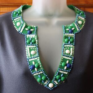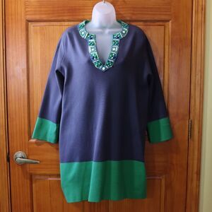 BCBG Maxazria Beaded Color Block Mini Sweater Dress LG