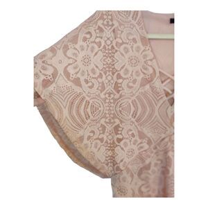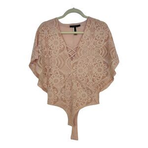BCBG Maxazria "Beata" Pink lace one piece bodysuit Flowy Sleeve V Neck Size S