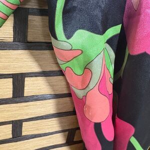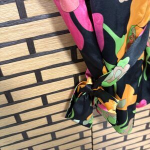 BCBG Maxazria Black Floral Wrap Style Top Size Small
