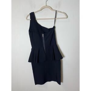 BCBG Maxazria Black One Shoulder Peplum Mini Dress Sz XS