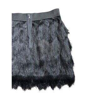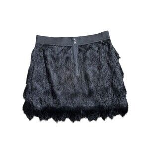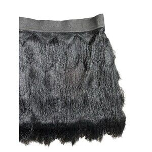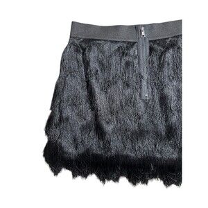 BCBG Maxazria Black Tiered Fringe Mini Skirt Black Sz Xs Flapper Style Festival
