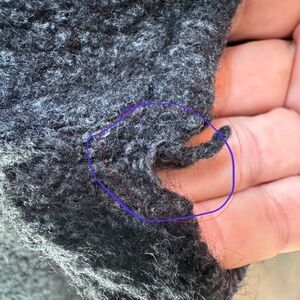 Needs a stitch at seam on left sleeve underneath as shown in listing.