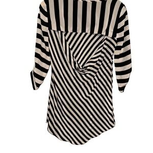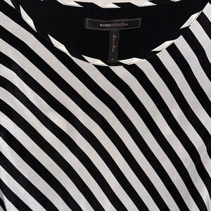 BCBG Maxazria Black and White Striped 100 % Silk Blouse - size medium
