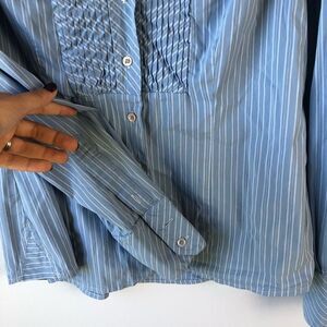 BCBGMaxazria Blue Pinstripes Button Down Shirt Casual Work Women Size Medium