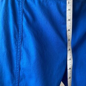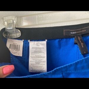 BCBG Maxazria Slater Blue Jeans. Small. Elastic waist. Vibrant blue color! I wear a medium and this size fits me well. Zipper behind the hem.