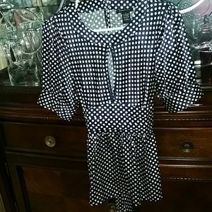 BCBG Maxazria Blue and White Polka-dot Blouse