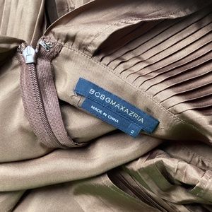 BCBG Maxazria Brown Sleeveless Pleated Silk Midi Dress Size 2