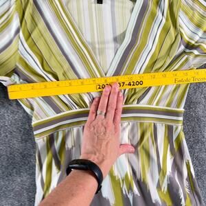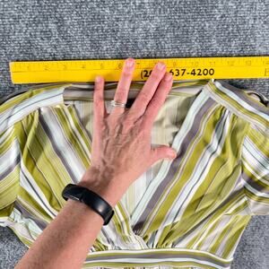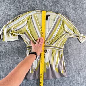 BCBG Maxazria Brushstroke Striped Faux-Wrap Top Green Blue Gray White Size S